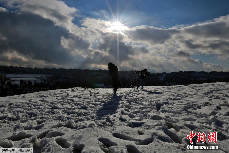 当地时间2015年1月11日,中东地区遭暴风雪袭击。图为约旦首都安曼,当地遭暴风雪袭击。
