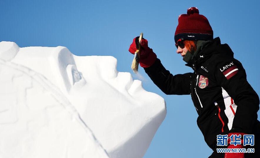 1月12日,在哈尔滨太阳岛雪博会上,“严寒雕刻师”在进行雪雕创作。当日,为期4天的第20届哈尔滨国际雪雕比赛在哈尔滨太阳岛雪博会“激战”正酣。来自12个国家28支代表队的100余名“严寒雕刻师”,使出浑身解数大秀雕刻技艺,一块块30余立方米的雪坯在他们手中逐渐被雕琢成一件件精美的艺术品。王建威 摄 图片来源:新华网