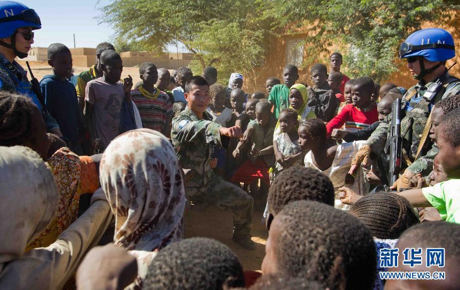 2014年12月30日,中国驻马里维和警卫分队队员李东坡在加奥市布尔贡杰村教小学生中国功夫。新华社记者李京摄 图片来源:新华网