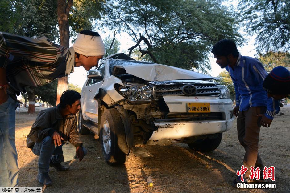 当地时间2015年1月12日,印度,美国国务卿克里在结束印度访问并前往艾哈迈达巴德机场途中遭遇小型车祸,美国务院发言人普萨基的声明称,克里在车祸中没有受伤。