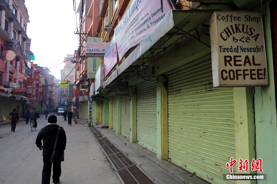 图为1月13日加德满都泰米尔商业区大量商店关门歇业。 符永康 摄