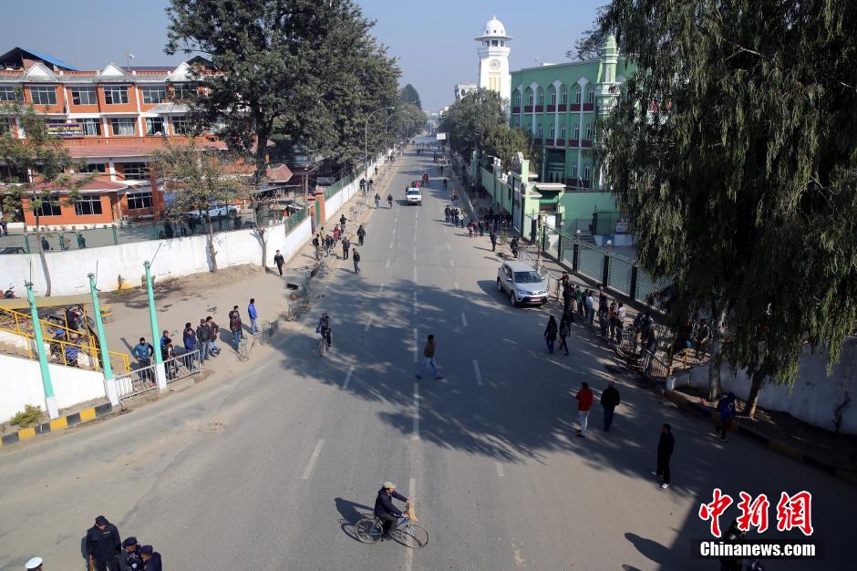 图为1月13日加德满都市中心车辆稀少。 符永康 摄