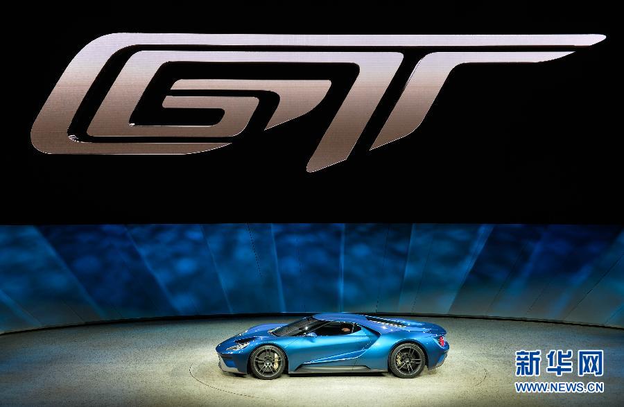 1月12日,在美国底特律举行的北美国际汽车展上,福特公司展示一款将于明年投产的新款GT跑车。 2015年北美国际汽车展12日在美国“汽车之都”底特律拉开帷幕。今年的北美年度卡车大奖由美国福特汽车赢得,年度轿车大奖由德国大众摘取。新华社记者鲍丹丹摄