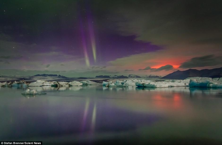 据英国《每日邮报》近日报道,冰岛,Holuhraun火山喷发造成的火光与北极光交相辉映,天空呈现五彩斑斓的色彩。31岁的软件工程师Stefan Brenner将这自然奇观成功定格。(网页截图)