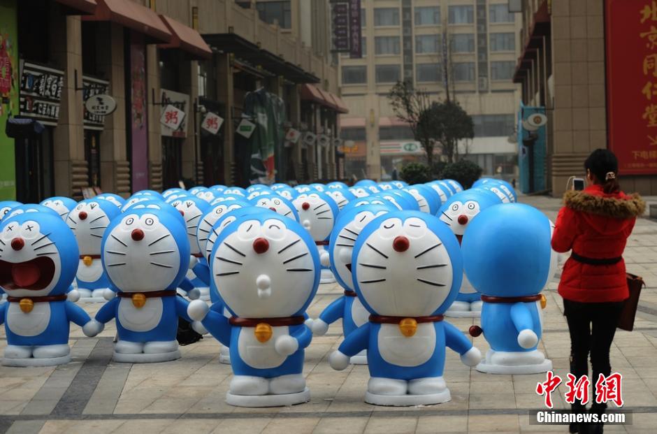 1月14日,近百只形态各异的“哆啦A梦”亮相长沙街头,引起众多市民驻足合影。在场的部分“80后”青年表示,看到“哆啦A梦”让他们想到了自己的童年,“哆啦A梦”作为一个常青的形象,伴随着自己成长。 杨华峰 摄