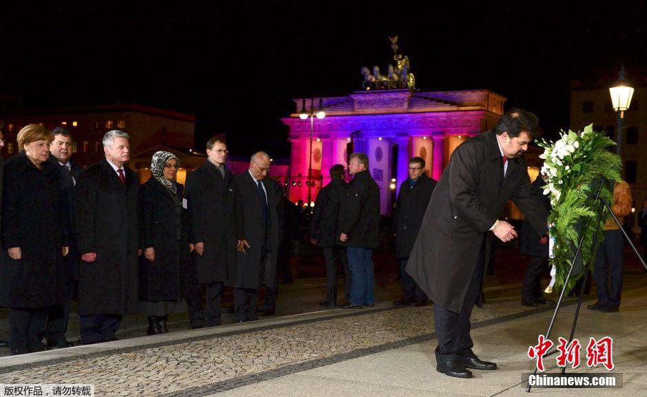 德国政要挽手守夜悼念法国杂志社遇袭死难者