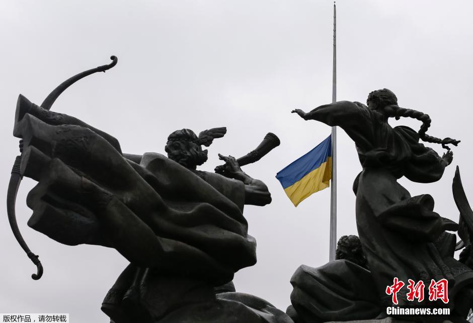 当地时间2015年1月15日,乌克兰基辅,乌克兰为长途客车遭火箭弹袭击遇难者举行全国哀悼。