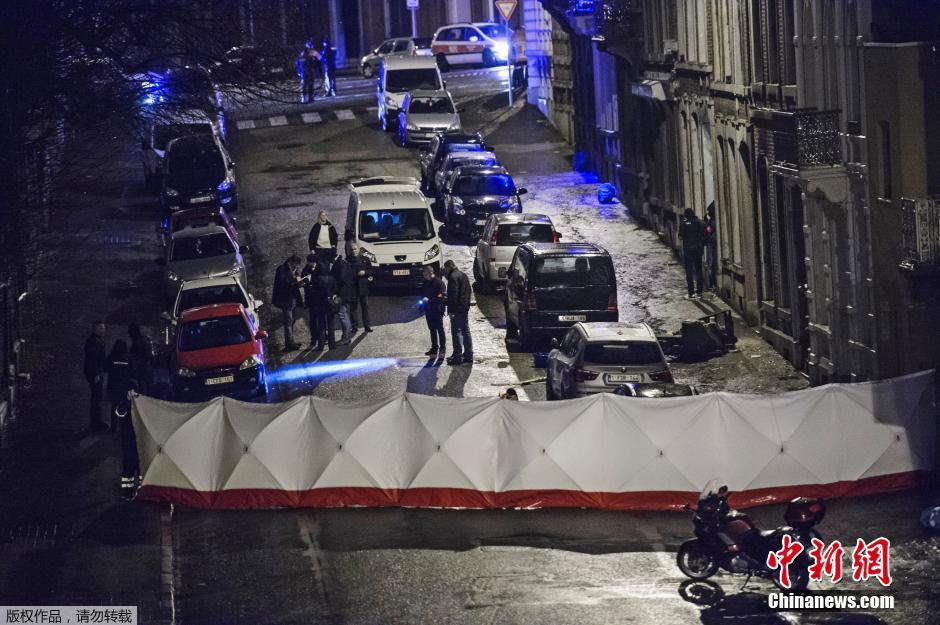 当地时间1月15日,比利时东部城市韦尔维耶,警方实施反恐行动,与三名恐怖分子在该市中心发生枪战,目前至少有两人被击毙、一人受伤,另有一名嫌犯被警方拘捕。图为比利时警方正在检查市中心的一栋建筑。