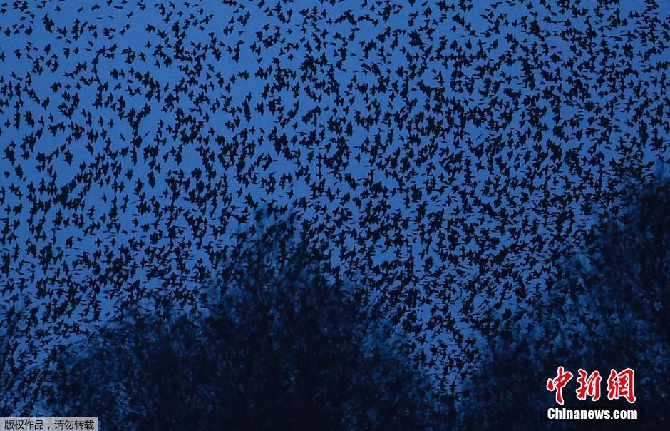 1月16日消息,近日,英格兰西南部格拉斯顿堡,成群椋鸟空中狂舞场面壮观。