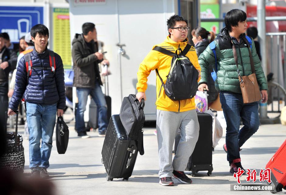1月16日,高校学生在福州火车站准备进站乘车。随着全国各大专院校开始陆续放假,铁路部门迎来节前学生放假返乡高峰,学生流高峰时段预计在18至25日。 中新社发 吕明 摄