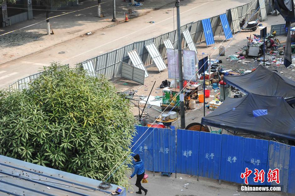 图为16日,狼藉的爆炸现场。 洪坚鹏 摄