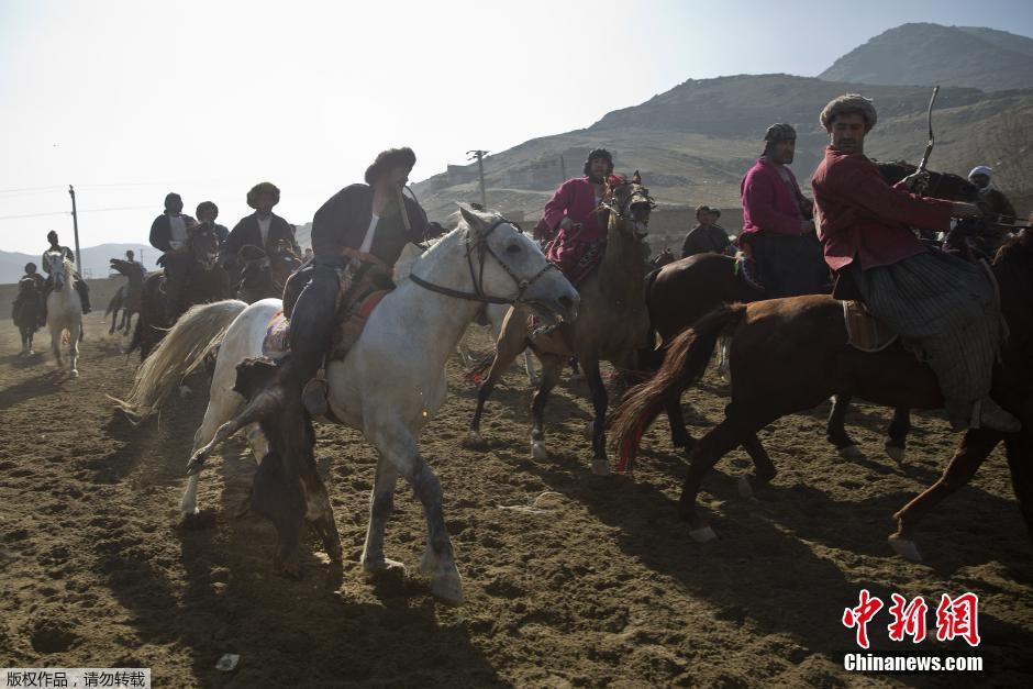 当地时间2015年1月15日,阿富汗喀布尔郊外,阿富汗骑手参加传统马背叼羊大赛。据悉,马背叼羊大赛被称为“阿富汗国赛”,参赛者要骑在马背上抢夺羊的尸体并扔进圈中,扔进次数多的队伍获胜,该比赛十分惊险刺激。