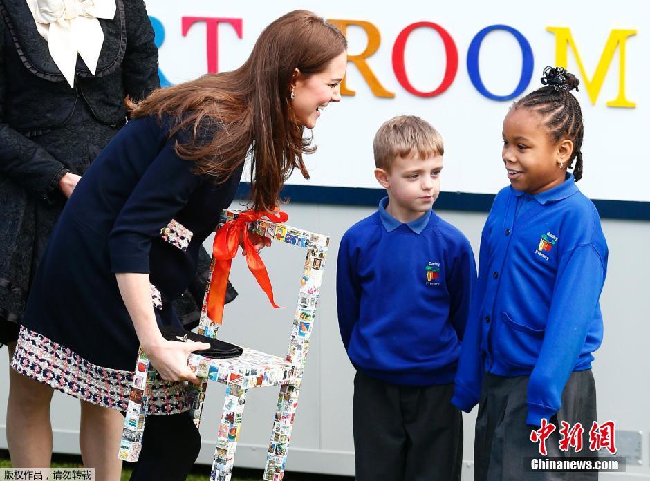 当地时间2015年1月15日,英国伦敦,凯特王妃访问Barlby小学,与学生亲密互动并收到学生送的礼物。