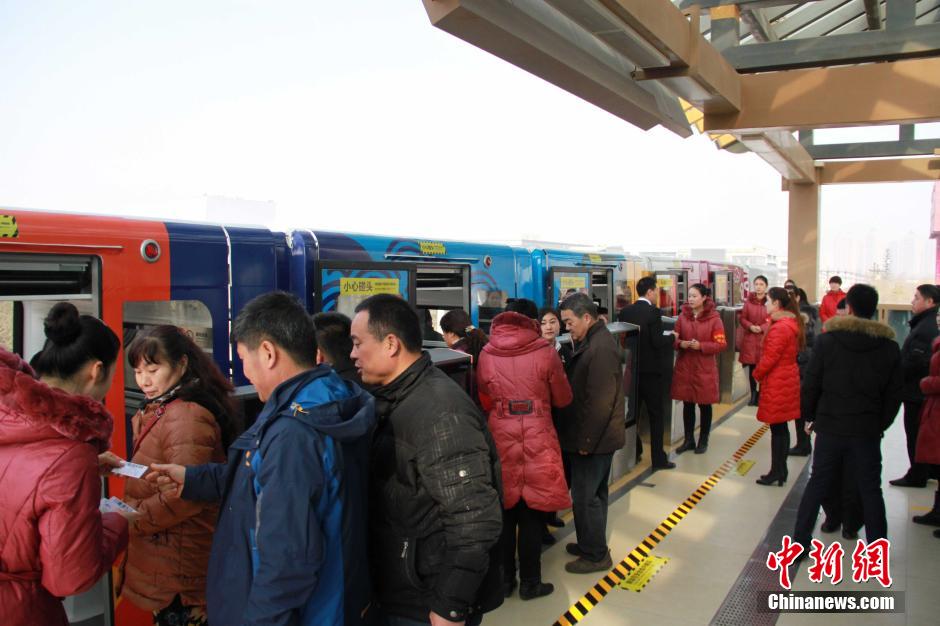 图为当地民众试乘轻轨列车。 张一辰 摄