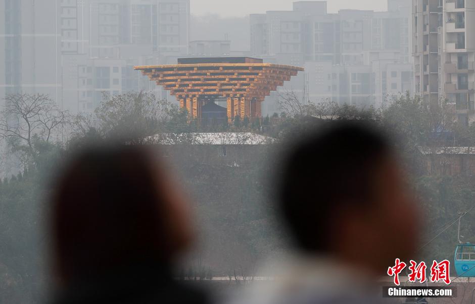 1月18日,在中国西部城市重庆街头,一幢以上海世博会中国馆为原型的建筑矗立,造型格外抢眼。 中新社发 泱波 摄