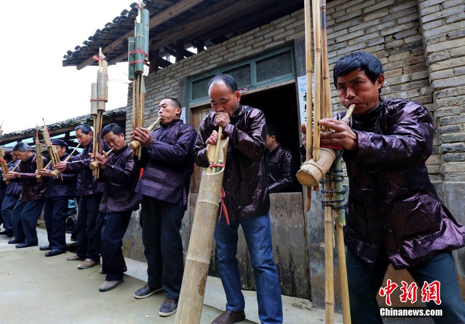 图为侗族汉子高奏笀同芦笙。中新社发 李长华 摄