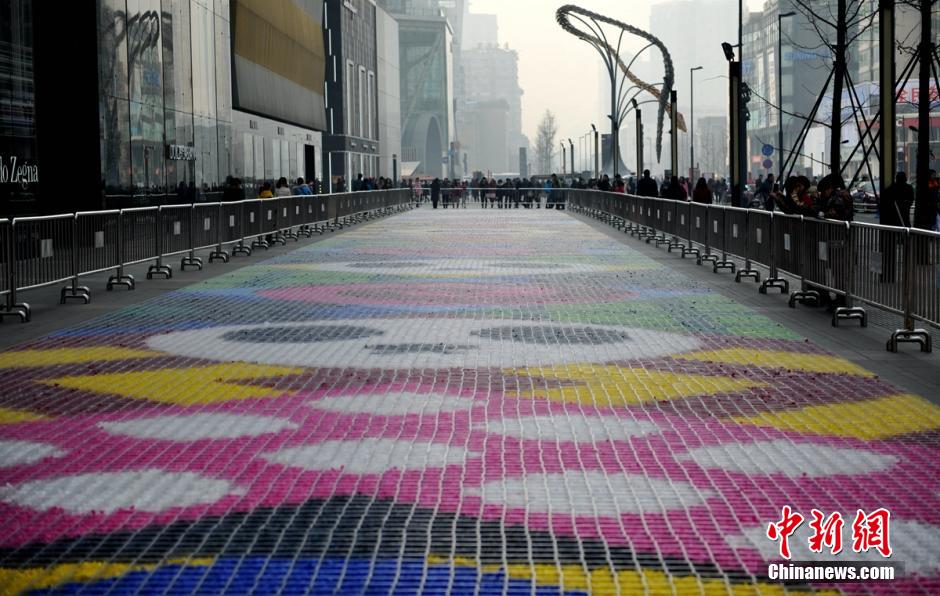 成都街头19吨糖果铺成甜蜜“地毯”
