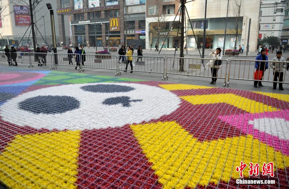 图为糖果“地毯”中的熊猫图案。 刘忠俊 摄