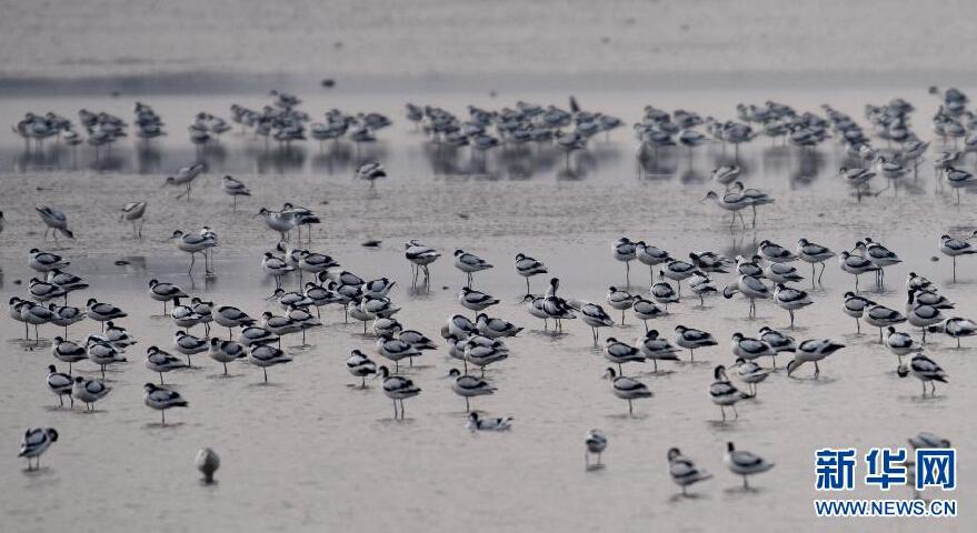 2015年1月21日 万鸟翔集洞庭湖 这是在东洞庭湖国家级自然保护区内拍摄到的一群反嘴鹬(1月20日摄)。记者近日从湖南东洞庭湖国家级自然保护区获悉,在一月中旬刚刚结束的一次环洞庭湖越冬水鸟调查结果显示,目前在东洞庭湖区越冬的候鸟超过10万只。每年10月份开始,大批候鸟从北方南飞抵达洞庭湖区,其中一部分候鸟将在洞庭湖区稍作休整后继续南飞,另外一部分候鸟将留在洞庭湖区越冬直到第二年春天。李尕 摄 图片来源:新华网