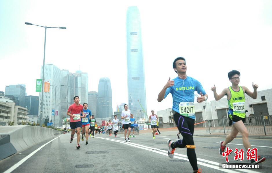 1月25日,一年一度的香港马拉松清晨展开,有超过7万人报名参加 。香港马拉松是香港一年一度深受市民欢迎的体坛盛事,设有马拉松、半马拉松、10公里赛事、10公里轮椅赛等项目。中新社发 谭达明 摄