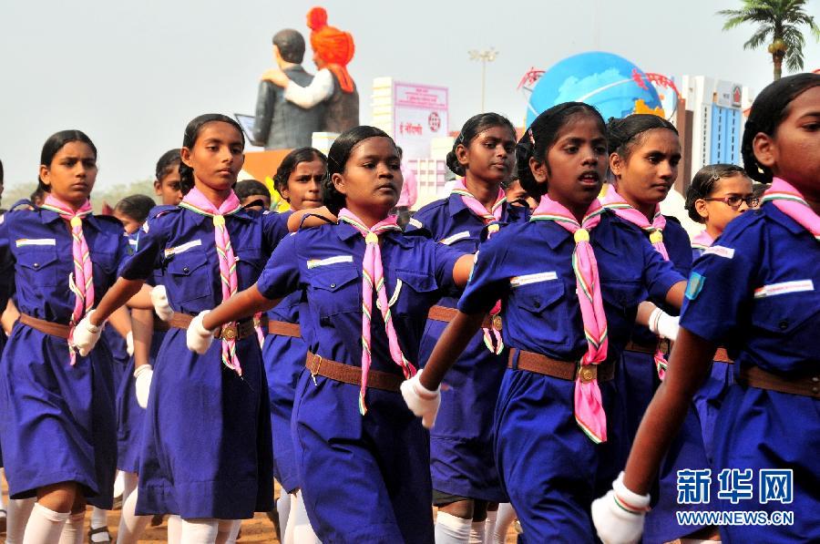 当日,印度马哈拉施特拉邦政府在孟买举行游行活动,庆祝第66个共和国日。1950年1月26日,印度签署宪法,宣布成立共和国。1月26日被定为共和国日。新华社记者汪平摄