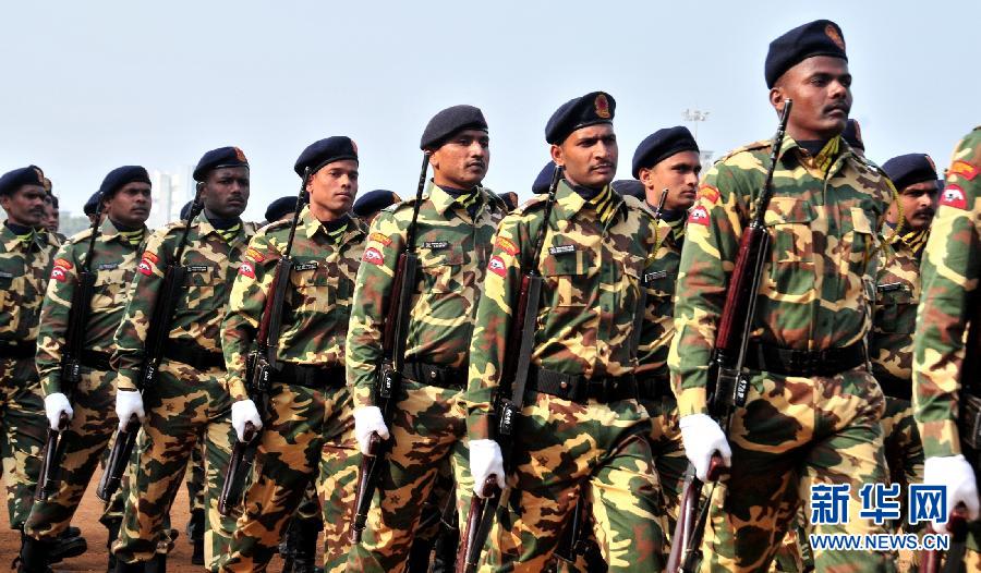 1月26日,在印度孟买,陆军士兵参加共和国日大游行。 新华社记者汪平摄