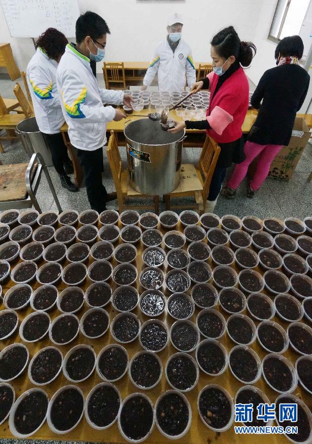 1月26日,在浙江海宁市海洲街道敬老院,爱心人士做腊八粥准备送往敬老院。