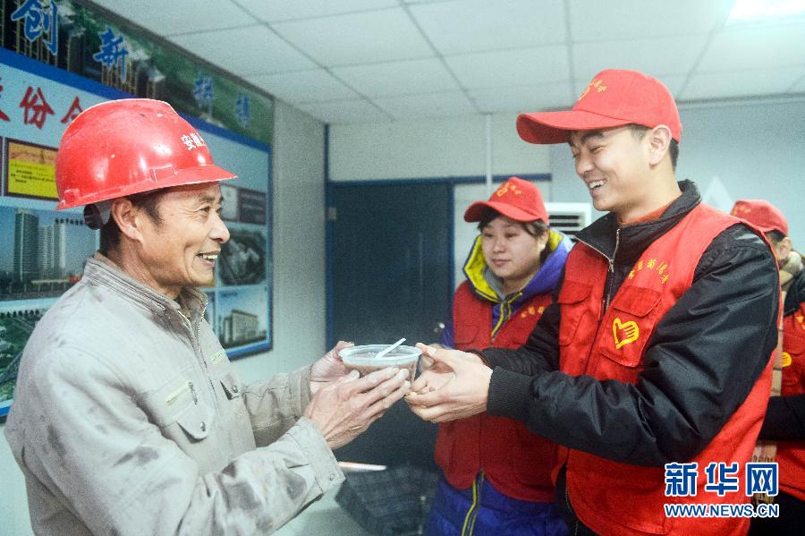 1月27日,安徽省合肥市包河区大圩镇志愿者向辖区农民工赠送腊八粥,并提供免费理发服务。