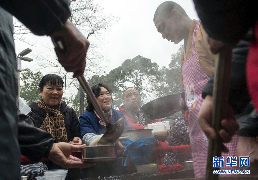 1月27日,四川省成都市文殊院向市民免费施粥,从今起连续三天,预计发放5万份腊八粥。