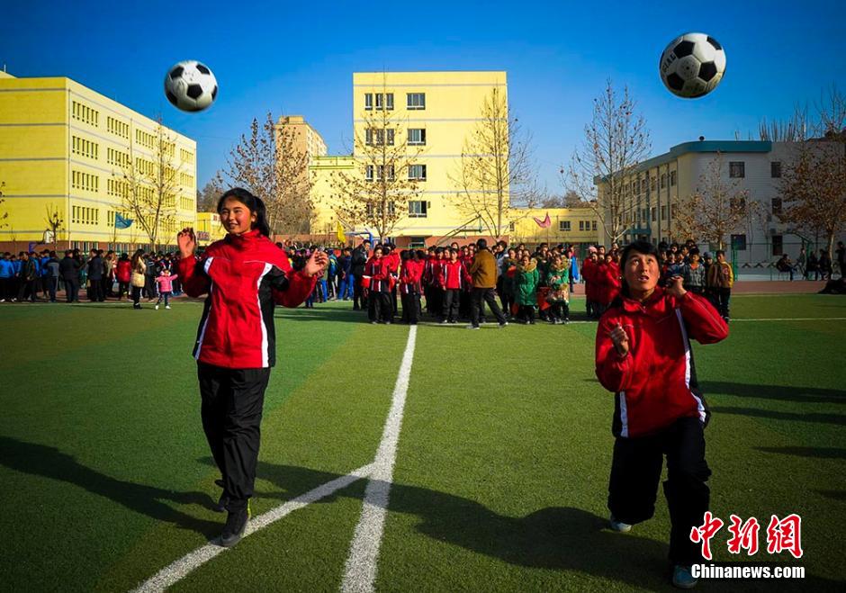 图为1月25日下午,和田市第四中学女子足球队在操场上进行赛前训练。和田市第四中学女子足球队是和田地区成立的第一支女子足球队,2014年2月曾代表和田地区前往吐鲁番参加新疆青少年足球联赛暨校园足球南疆片区决赛,并取得第三名的好成绩。 刘新 摄
