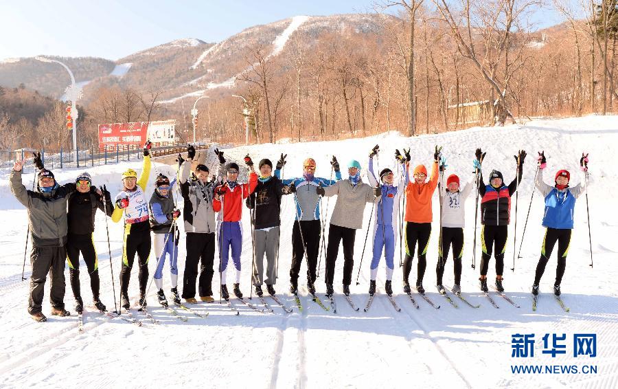 图为中国听障人越野滑雪队队员和教练员合影(1月23日摄)。