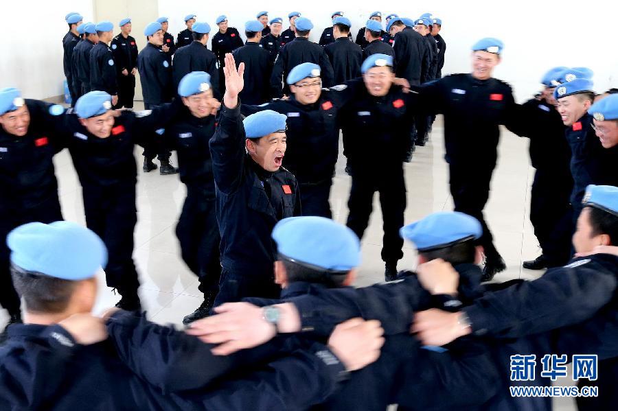 1月28日,队员在做心理训练游戏,培养团队协作能力。当日,我国第三支赴利比里亚执行维和任务的警察防暴队在山东济南进行集训。针对维和任务的特殊性,这次集训专门开设了心理训练课程,帮助维和队员培养良好的心理素质。据了解,我国第三支赴利比里亚维和警察防暴队由山东公安边防总队为主组建,计划于2015年3月赴利比里亚执行为期8个月的维和任务。新华社记者朱峥摄