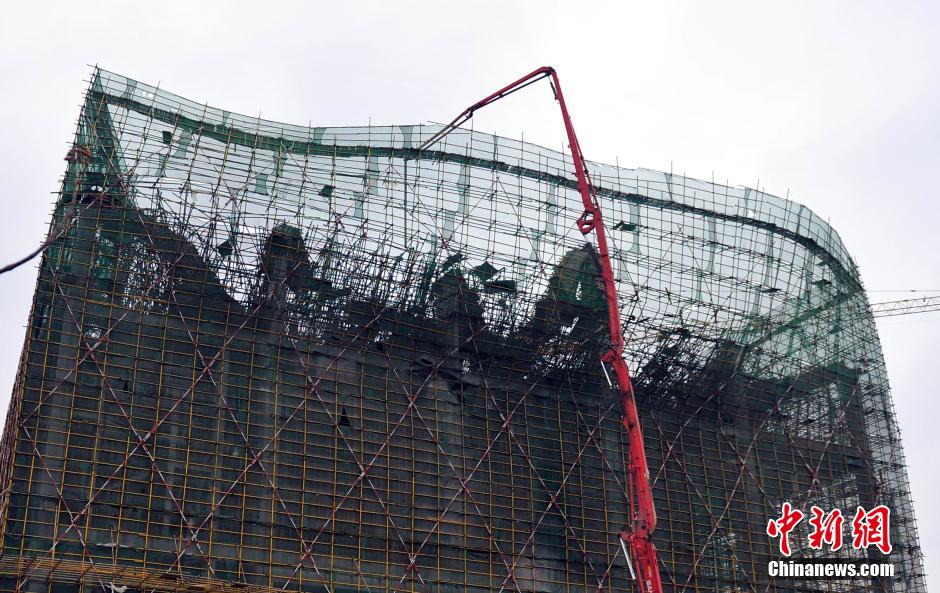 1月29日凌晨零时25分许,位于江西南昌市的江西科技师范大学发生一起楼面坍塌事故,目前已造成1人遇难18人受伤,其中3人重伤。据官方通报,事故为该体育馆建筑工程顶层现浇过程中高支模发生坍塌(面积约600平方米),伤亡人员均为工地施工人员,伤者已被送往医院救治。目前,事故原因还在进一步调查中。图为发生坍塌事故的在建楼。 刘占昆 摄