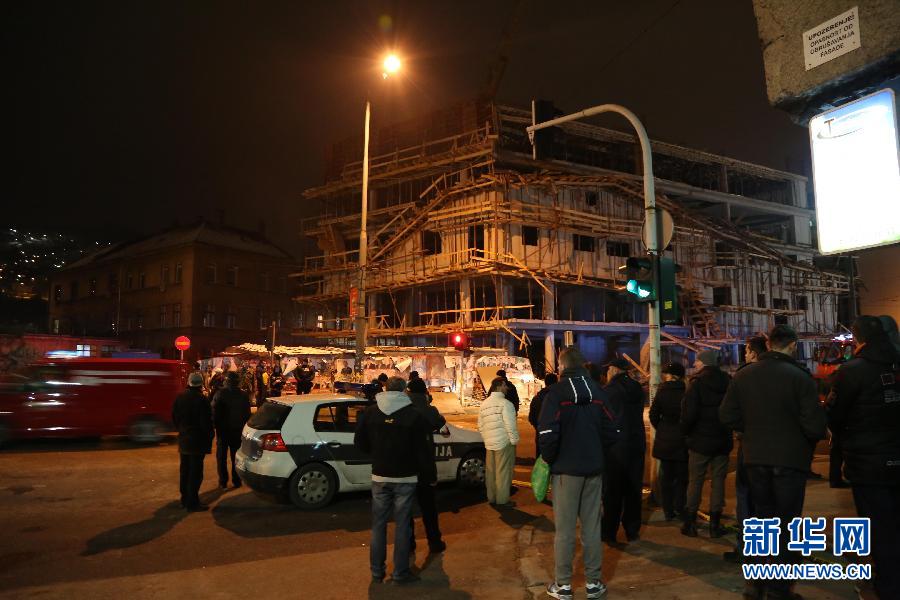 1月28日在波黑首都萨拉热窝拍摄的一处在建建筑倒塌现场。 当日,萨拉热窝市中心一处在建建筑发生倒塌事故,造成2人死亡,多人受伤。新华社发(哈里斯·梅米亚摄)