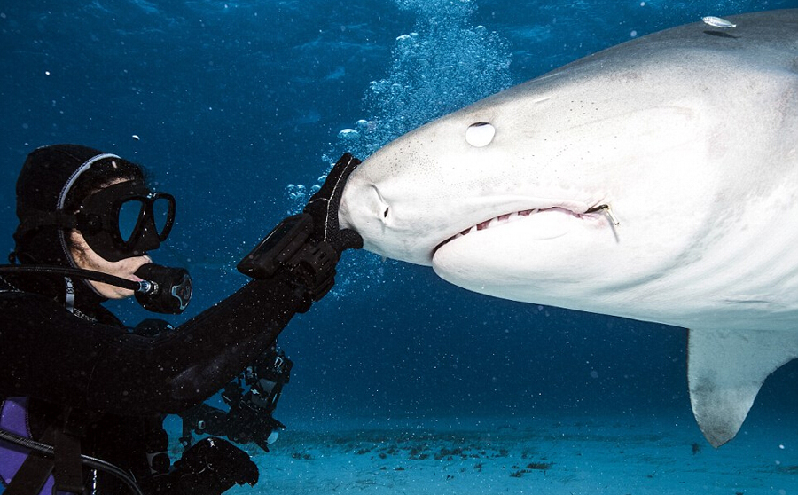 摄影师冒生命危险拍摄鲨鱼嘴中构造