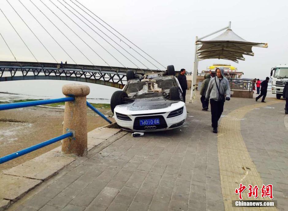 1月29日,很多上班的市民看到青岛澳门路海边转弯处一辆奥迪车撞破护栏翻在岸边,仅差半米就掉进大海,场面惊险。据悉,驾驶员不知去向,周围的人不清楚事故具体发生时间。 中新社发 CNSPHOTO 摄