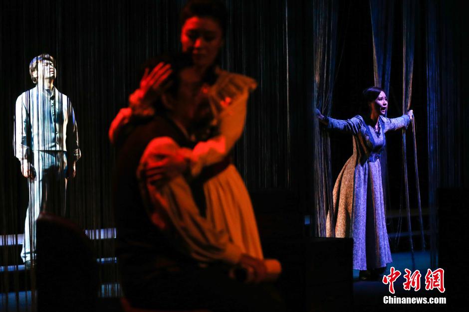 1月29日,是俄罗斯著名作家契诃夫155岁生日,为纪念他的诞辰,由翻译专家童道明担任编剧,杨申执导的戏剧《爱恋·契诃夫》在中国国家话剧院小剧场正式上演。该剧以《海鸥》在1869年圣彼得堡首演失败为背景,讲述了郁郁寡欢的契诃夫与初恋情人丽卡·米齐诺娃在创作事业与婚姻情感之间的故事。剧中,演员展现了卸下神性光环的契诃夫作为一个普通人,如何在自己的理想与现实之间进行取舍的一面,让观众见识到一个更加多面、人性化的契诃夫。中新社发 富田 摄