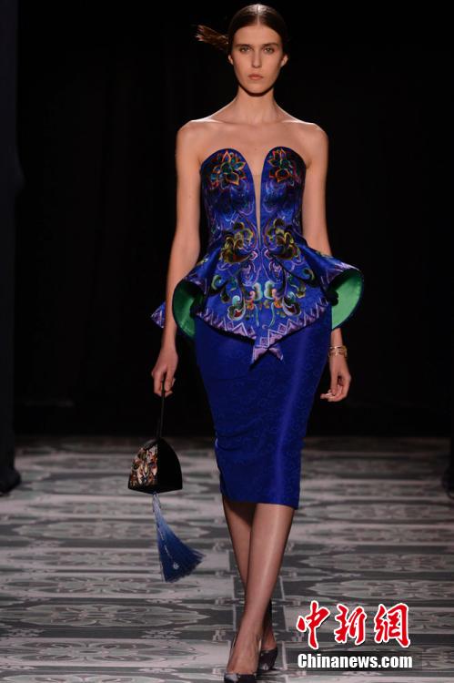 图为模特身着《敦煌》礼服走T台。 泱波 摄
