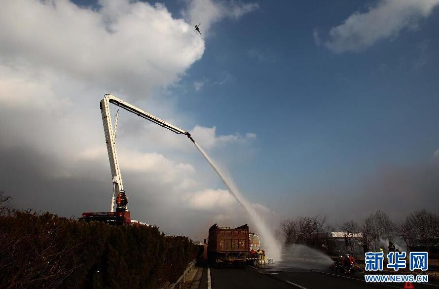 1月30日,一架警用无人直升机在演练现场进行实时拍摄并传输信号。孙树宝 摄 图片来源;新华网