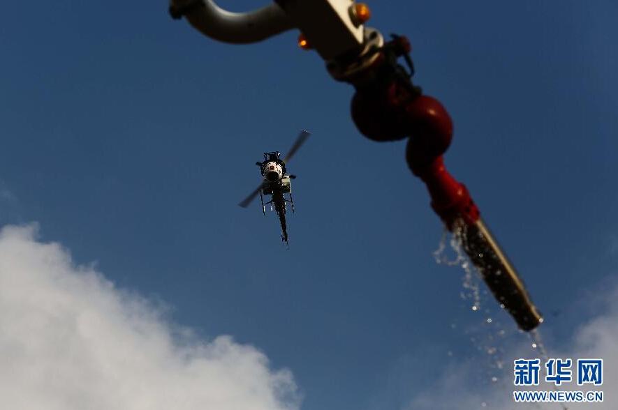 1月30日,一架警用无人直升机在演练现场进行实时拍摄并传输信号。孙树宝 摄 图片来源:新华网