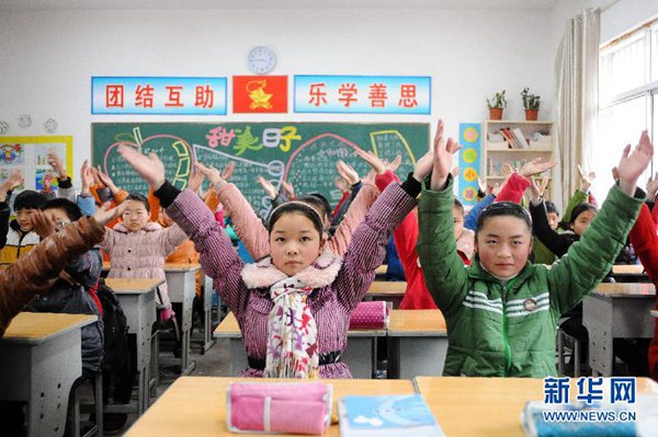 江苏省淮安市一集中供暖小区居民赵丽华在家中客厅观看电视(1月6日摄)。新华社记者 沈鹏 摄
