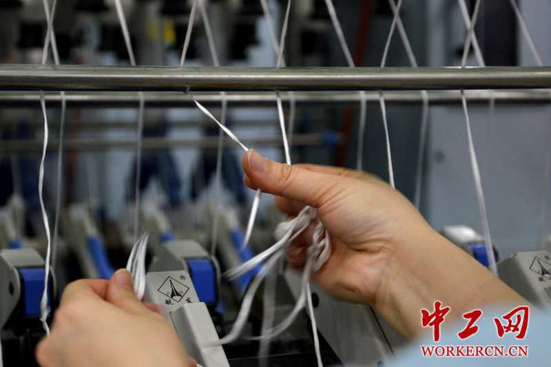 值车工接头、换纱要求“稳、准、快”。 (中工网记者 笑语摄)