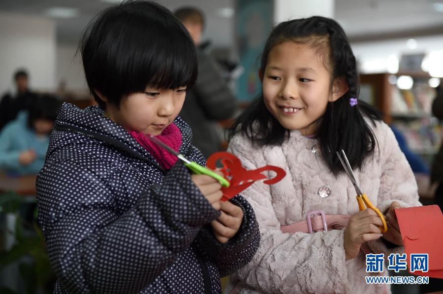 2月1日,太原市山西省图书馆内,孩子们正在剪纸。 2月1日,山西省图书馆读者工作部、少年儿童图书馆邀请到有“三晋一刀剪”之誉的剪纸艺术家康冬云,现场教授小读者剪纸,通过贺年题材的剪纸作品培养孩子们对传统文化的认识。新华社记者 范敏达 摄