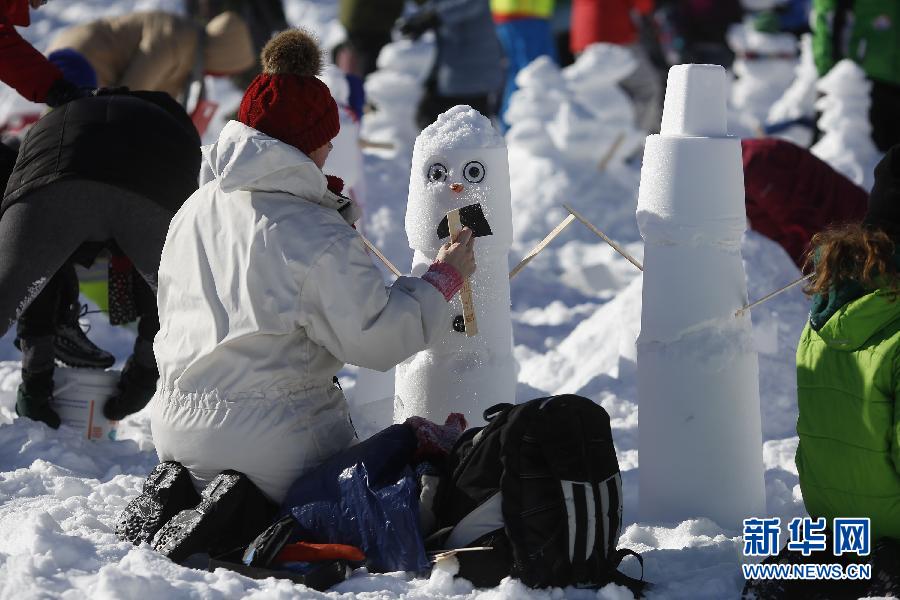 当日,近千名成人和儿童来到渥太华道明广场,参加冲击堆雪人吉尼斯世界纪录的活动。根据规定,每个雪人必须有双臂、双眼和鼻子。最终,参与者在1小时内共堆雪人1299个。2011年在美国盐湖城市举行的堆雪人活动共在1小内堆成雪人1279个。新华社发(大卫·卡瓦伊摄)