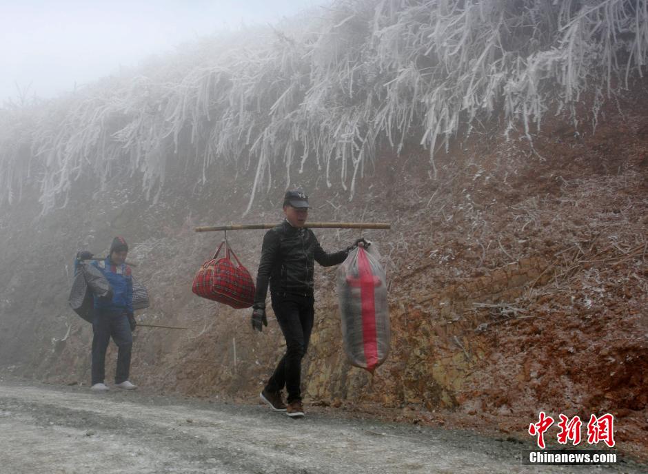 桂北高寒山区现雨夹雪 草木皆“冰”
