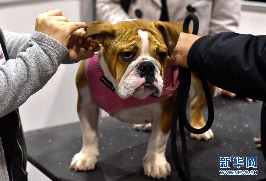 2月1日,在葡萄牙里斯本举办的宠物展上,一位女士给小狗装饰耳钉。当日,为期三天的葡萄牙宠物展在葡首都里斯本会展中心落下帷幕。本届宠物展上共展出了2500多只宠物,除常见的家庭宠物外,还包括蜥蜴、变色龙、蟒蛇和猫头鹰等罕有种类。 新华社记者张立云摄
