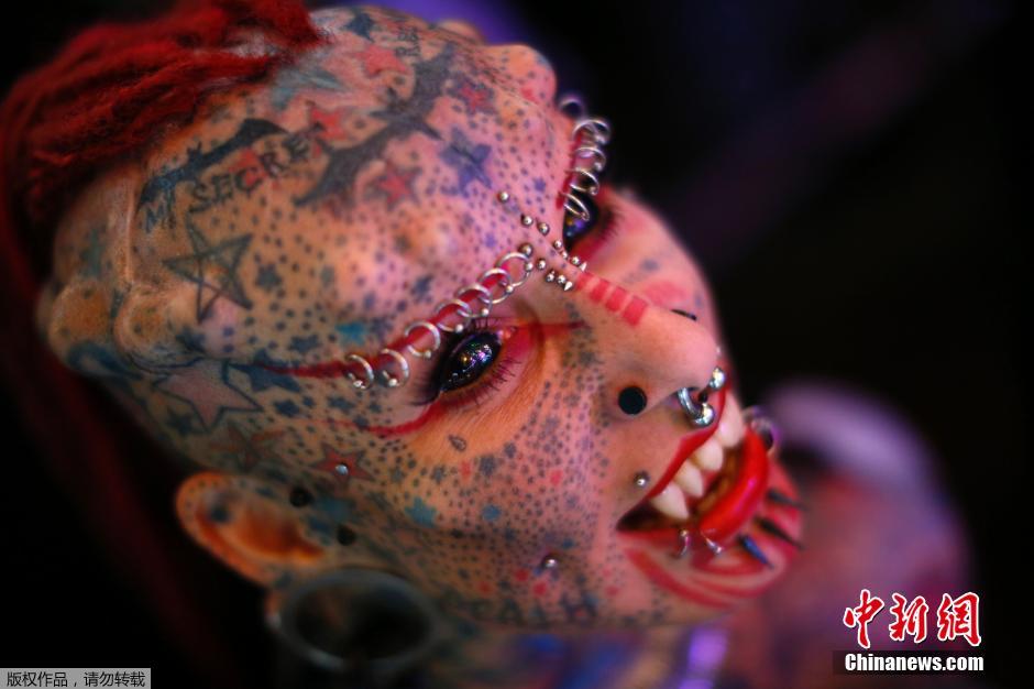 当地时间2015年1月29日,委内瑞拉加拉加斯,纹身博览会在当地举行,各种纹身艺术和身体改造艺术让人不寒而栗。