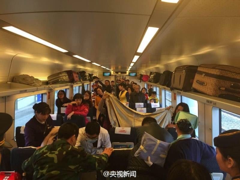 1月31日,深圳北开往厦门北的D2318次列车上,一名孕妇突然腹痛难忍,眼看着就要生产。列车工作人员紧急将男乘客疏