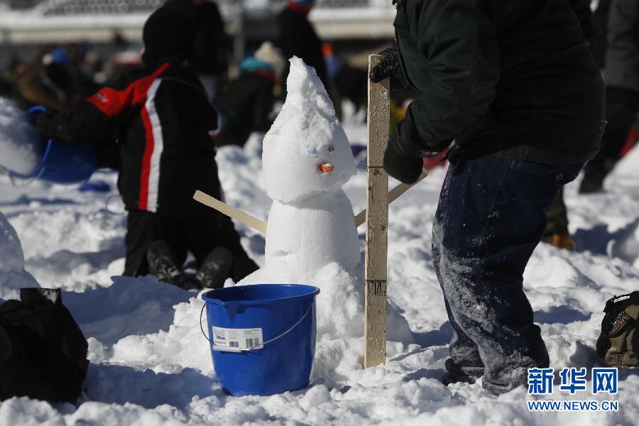 当日,近千名成人和儿童来到渥太华道明广场,参加冲击堆雪人吉尼斯世界纪录的活动。根据规定,每个雪人必须有双臂、双眼和鼻子。最终,参与者在1小时内共堆雪人1299个。2011年在美国盐湖城市举行的堆雪人活动共在1小内堆成雪人1279个。新华社发(大卫·卡瓦伊摄)