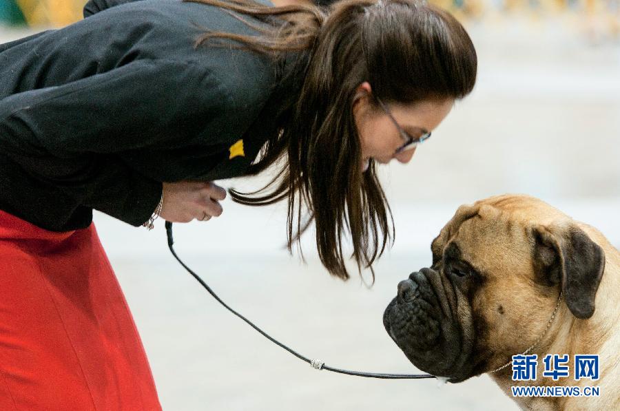 1月31日,在美国芝加哥,一位女士和她的宠物狗在2015芝加哥国际狗狗秀上表演。 新华社记者何险峰摄